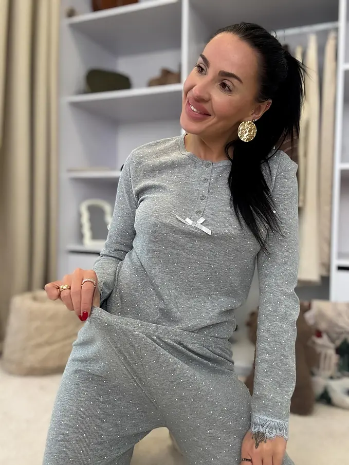 Rebrované pyžamo s čipkovým lemom AVILMA