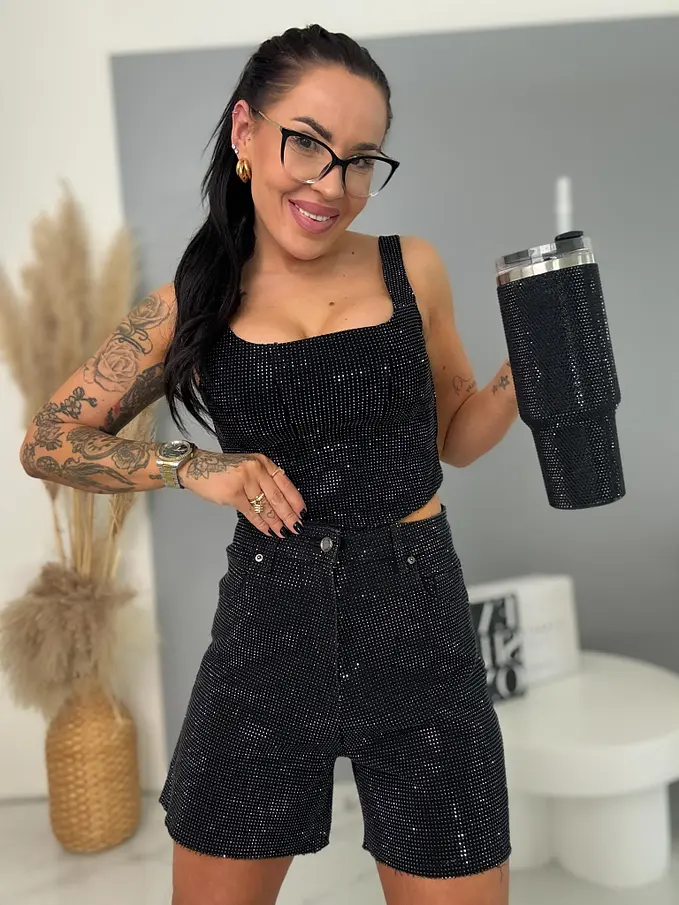 Rifľové šortky s kamienkami CRYSTAL