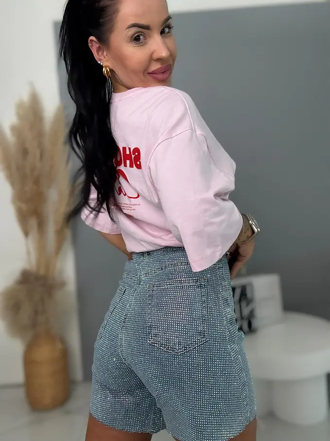 Rifľové šortky s kamienkami DIAMOND GLOW
