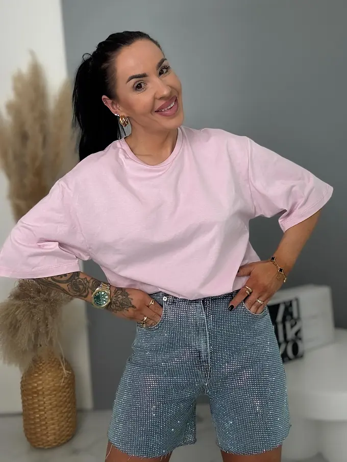 Tieto moderné a štýlové rifľové šortky spájajú čistý dizajn s výraznými detailmi. Starostlivo osadené, odolné kamienky dodávajú jedinečný, trblietavý vzhľad, zatiaľ čo klasický denim materiál zaručuje pohodlné nosenie počas celého dňa.
