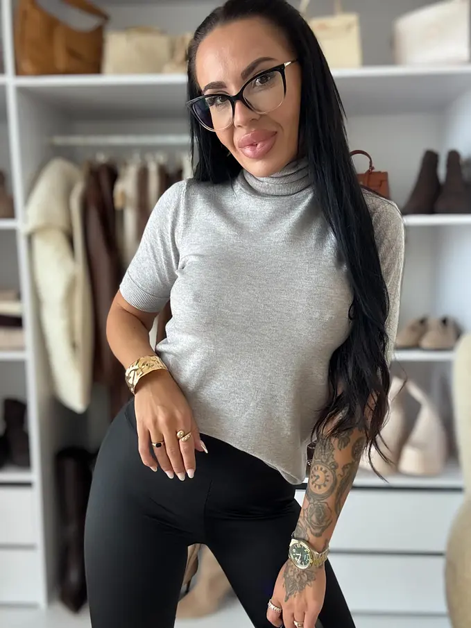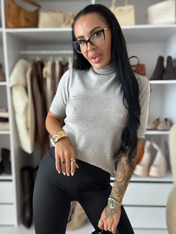 Modelka čiernovláska meria 164 cm a váži 57 kg.