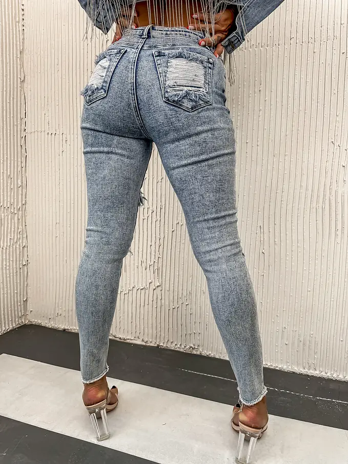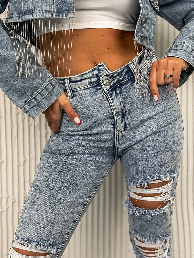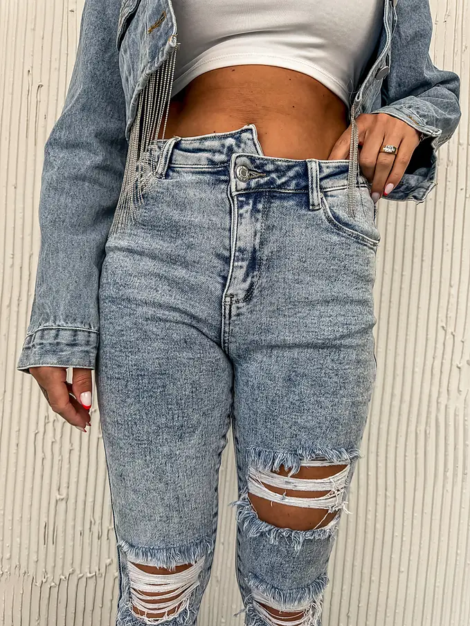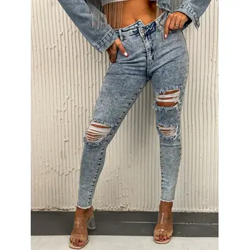 Roztrhané skinny rifle s vysokým pásom+