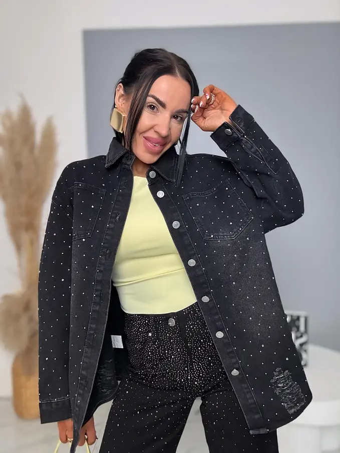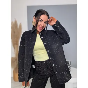 Roztrhaný denim kabát zdobený kamienkami MADINA