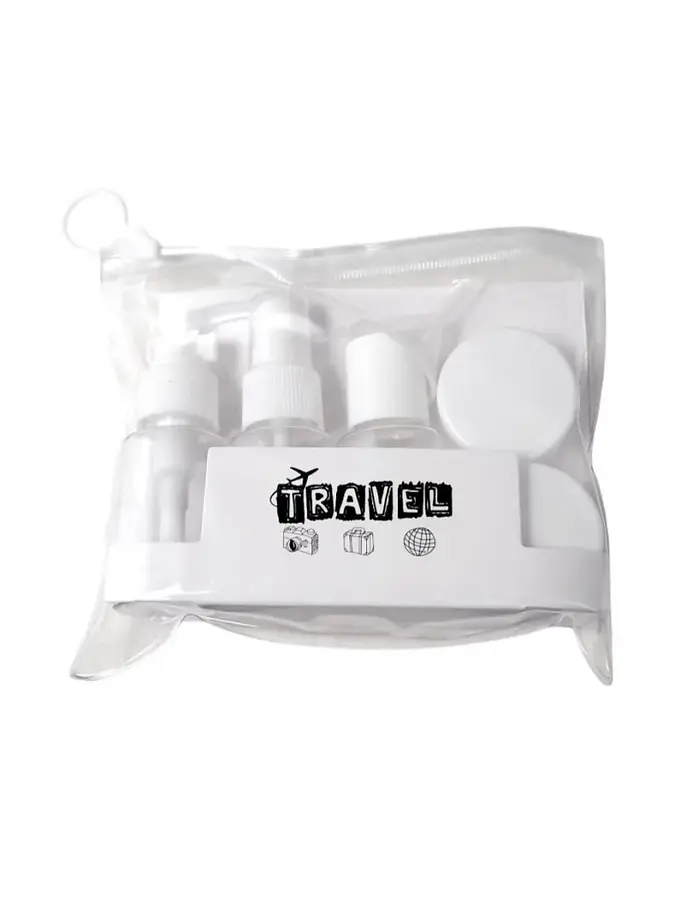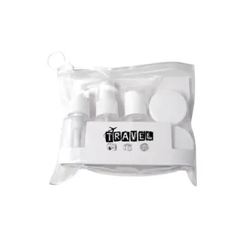 7-dielna sada fliaš a nádob, špeciálne navrhnutá na prepravu kozmetiky pri cestovaní.