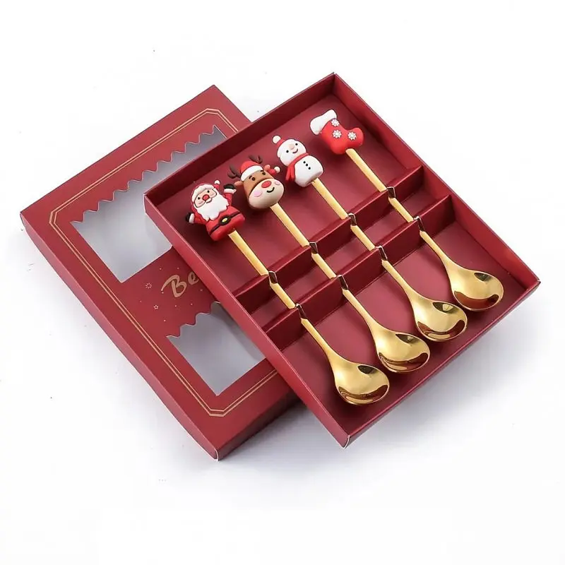 Zažite vianočnú atmosféru! Krásna sada 4 lyžíc v krabičke s vrchnákom je perfektným tipom na darček.