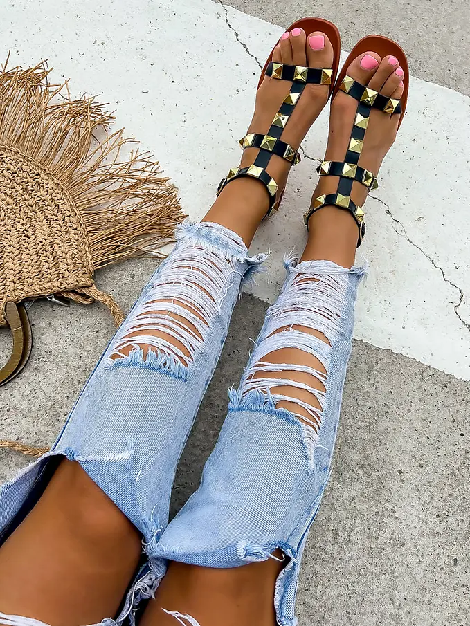 Sandále zdobené zlatými nitmi JAYNA-