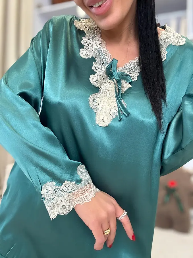 Saténové pyžamo s čipkovým lemom NAMY