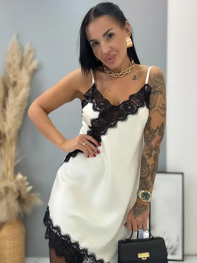 Šaty sú vyrobené z príjemného chladivého materiálu. Nie sú elastické. So nastaviteľnými ramienkami.