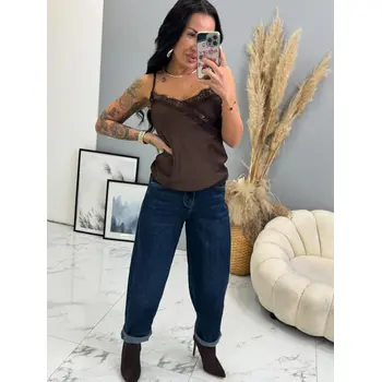 Elegantný saténový top s jemnou čipkou a nastaviteľnými tenkými ramienkami.