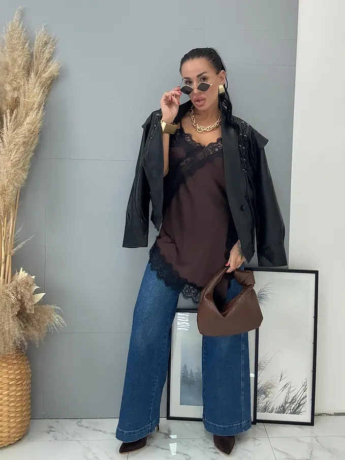 Saténový top so čipkou LAYLAH