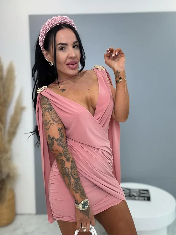 Šaty sú vyrobené z príjemného materiálu. Sú elastické. So zlatou brošňou ktorá je odnímateľná.