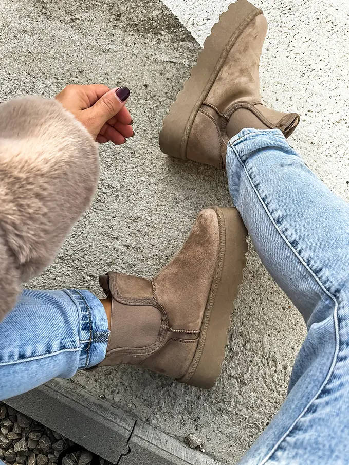 Štýlová aj v sychravom počasí? Čižmy perfektne doplnia napríklad slim džínsy a vestu z kožušinky.