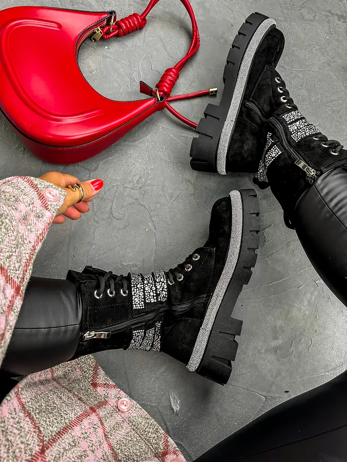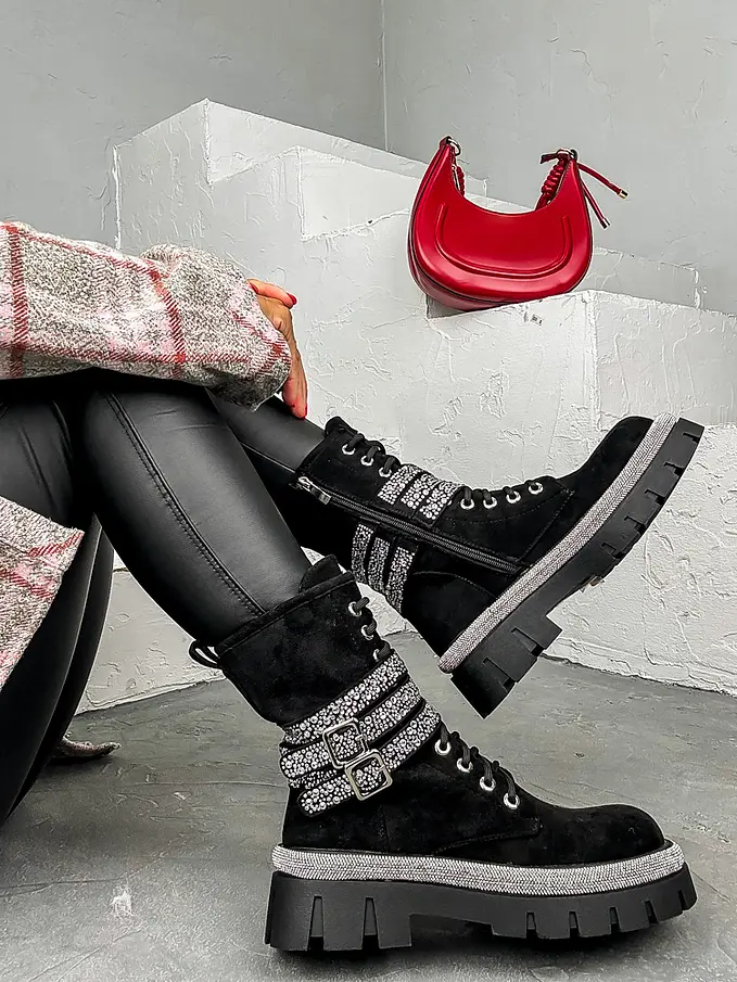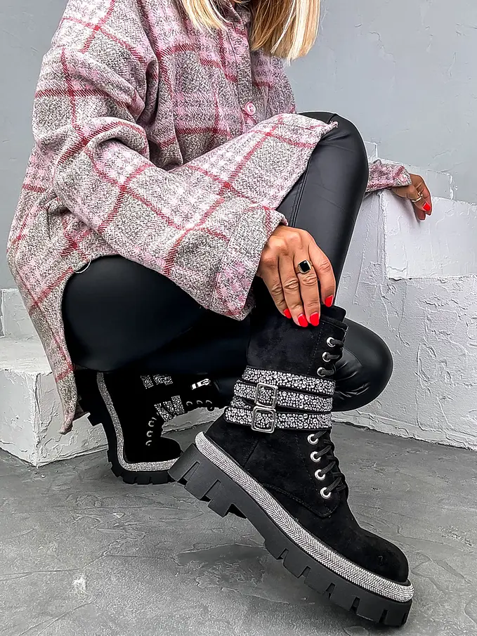 Štýlová aj v sychravom počasí? Čižmy perfektne doplnia napríklad slim džínsy a vestu z kožušinky. Doplnky majú striebornú farbu. Čižmy sú mierne zateplené.