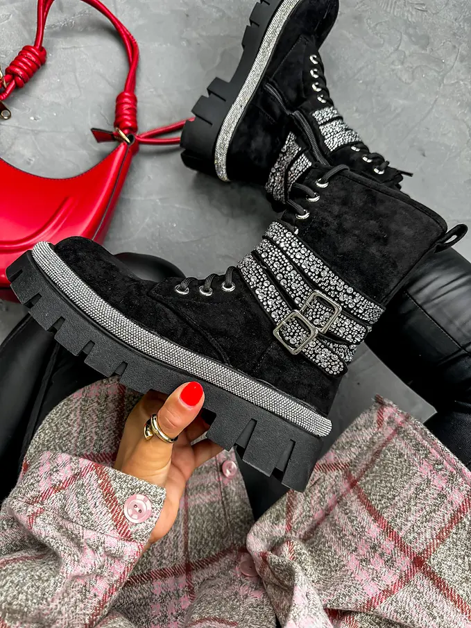 Semišové šnúrovacie členkové čižmy MADELYN-