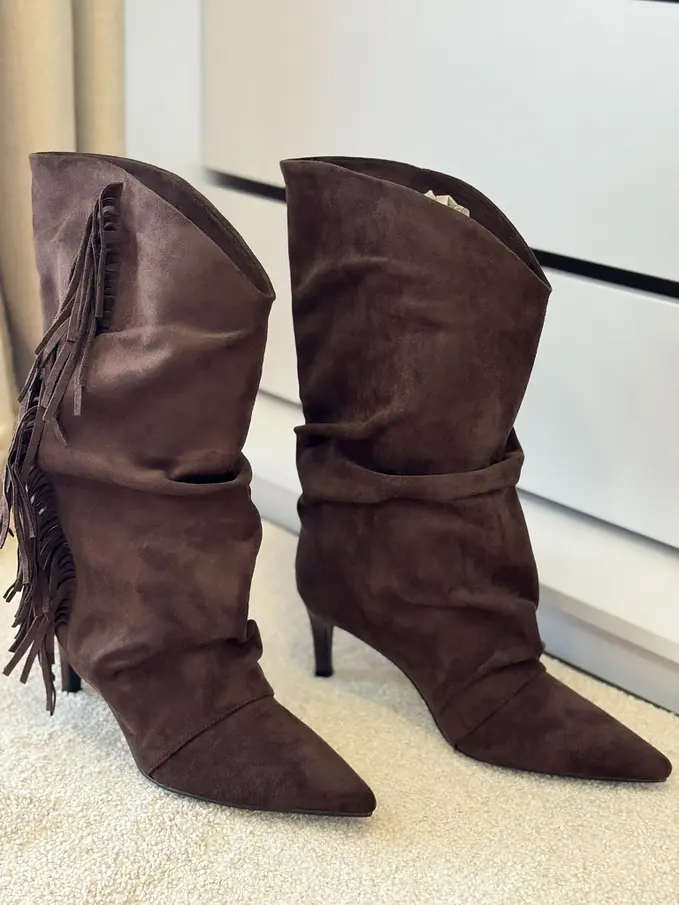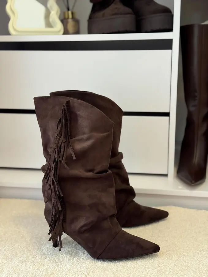 Štýlová aj v sychravom počasí? Čižmy perfektne doplnia napríklad slim džínsy a vestu z kožušinky. Doplnok má striebornú farbu. Čižmy sú mierne zateplené.