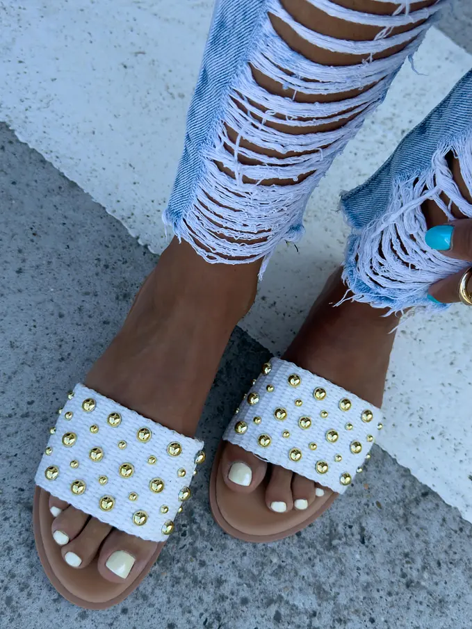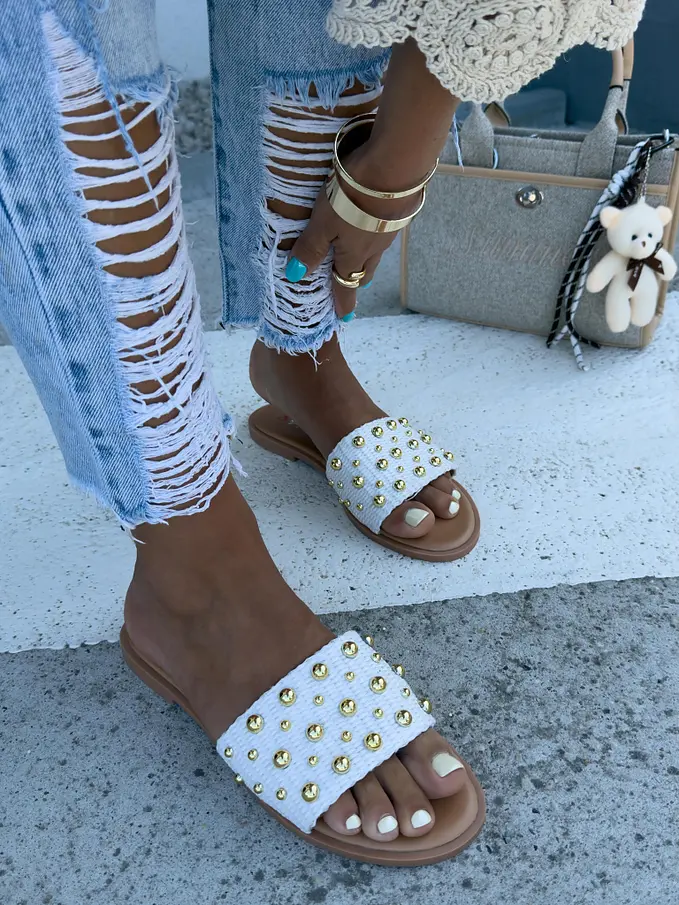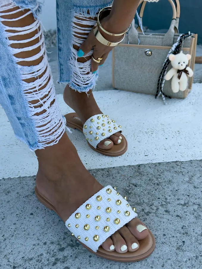 Šľapky so zlatými perličkami RUBY-