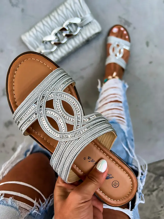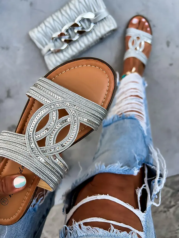 Dámske šľapky zdobené s flitrami.