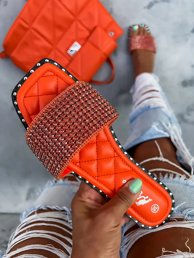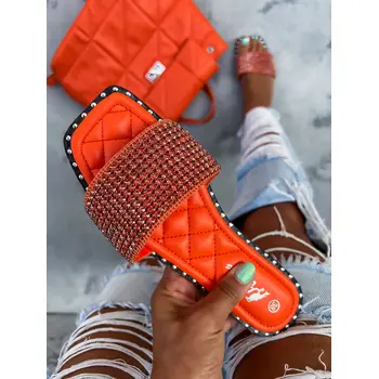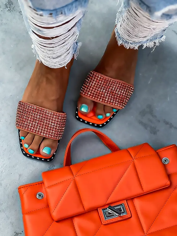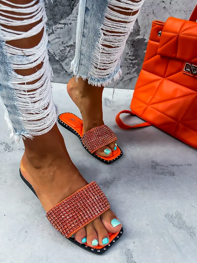 Dámske šľapky zdobené kamienkami.