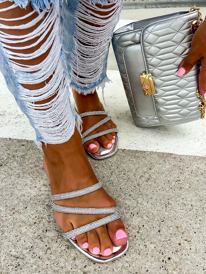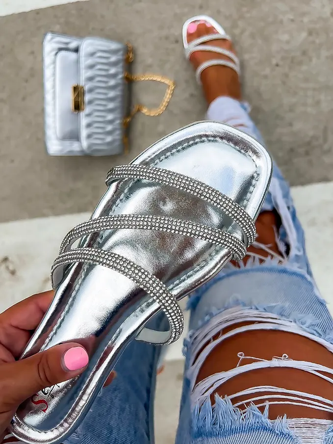 Pohodlné šľapky na každú príležitosť. Kamienky majú striebornú farbu.