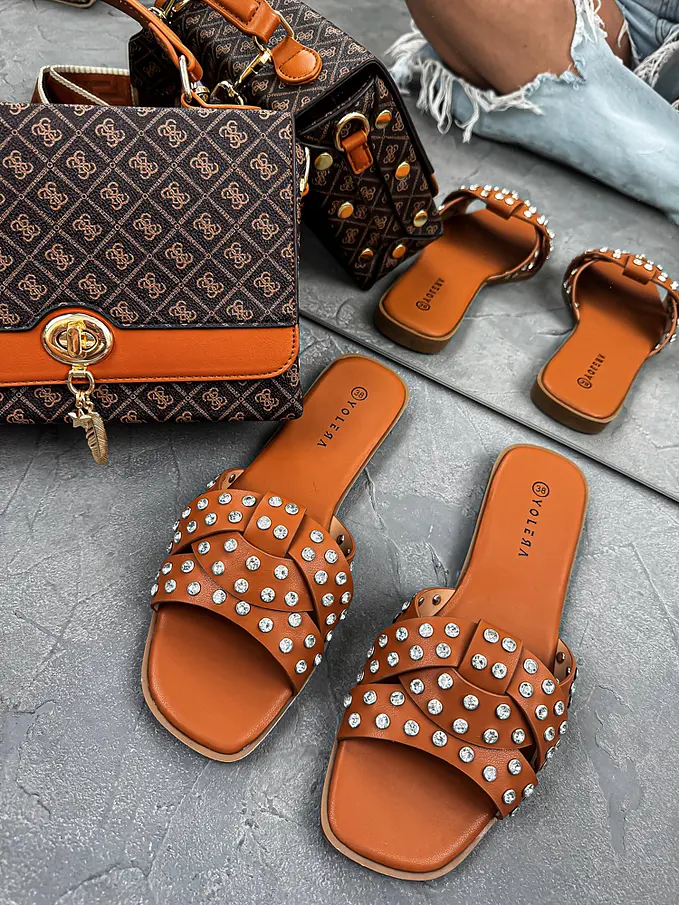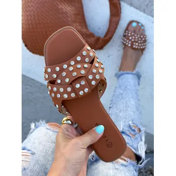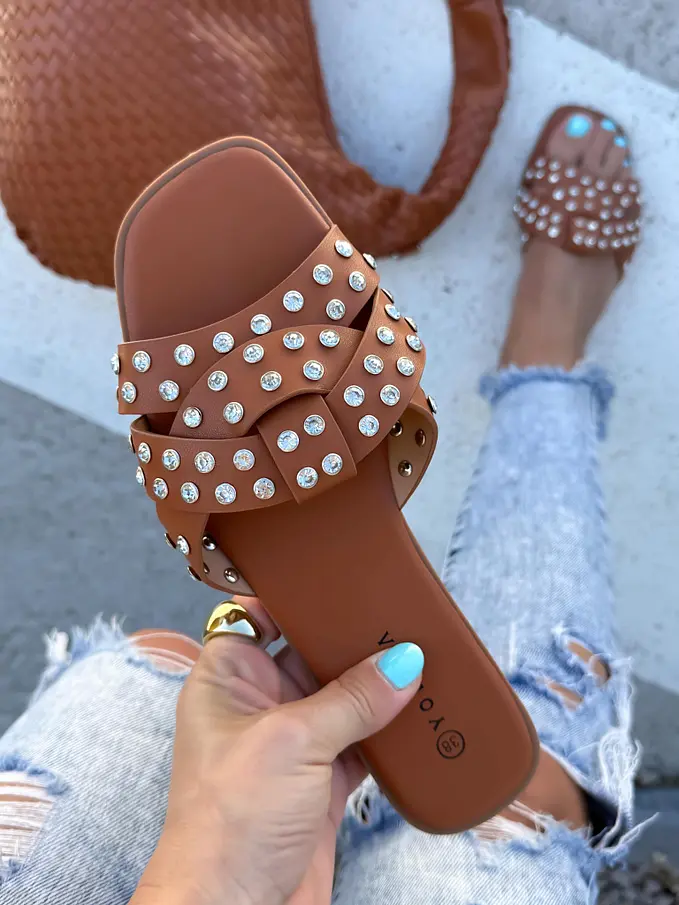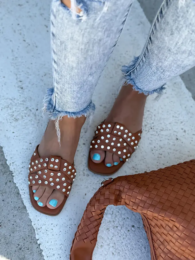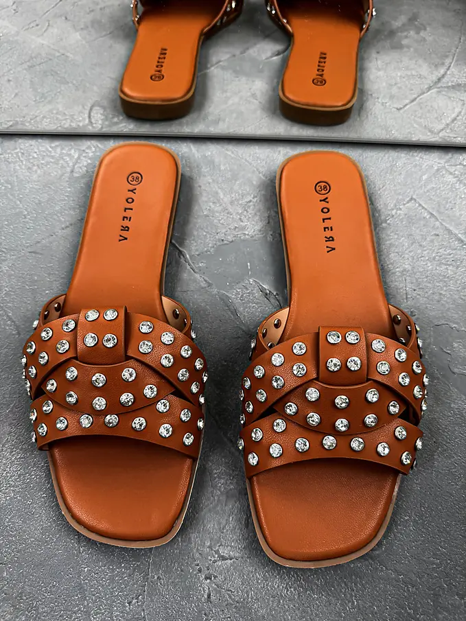 Šľapky zdobené striebornými kamienkami LAMIA-