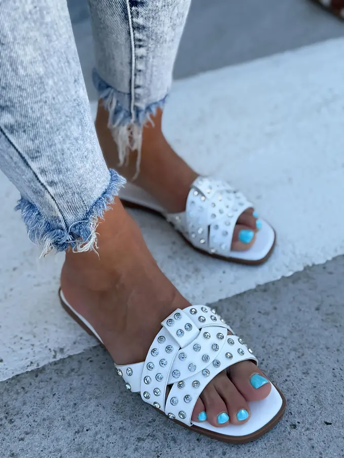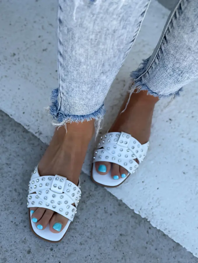 Šľapky zdobené striebornými kamienkami LAMIA-