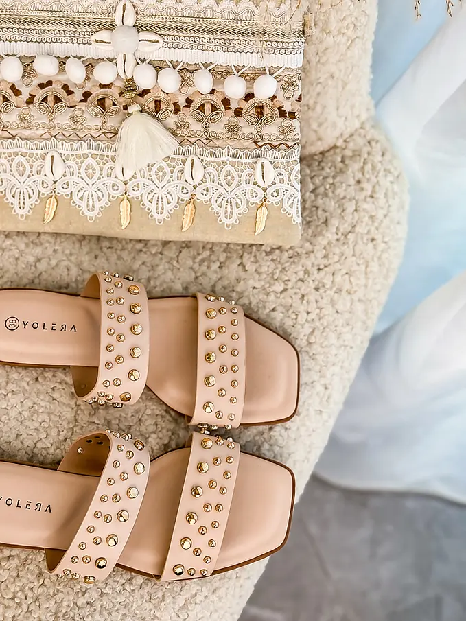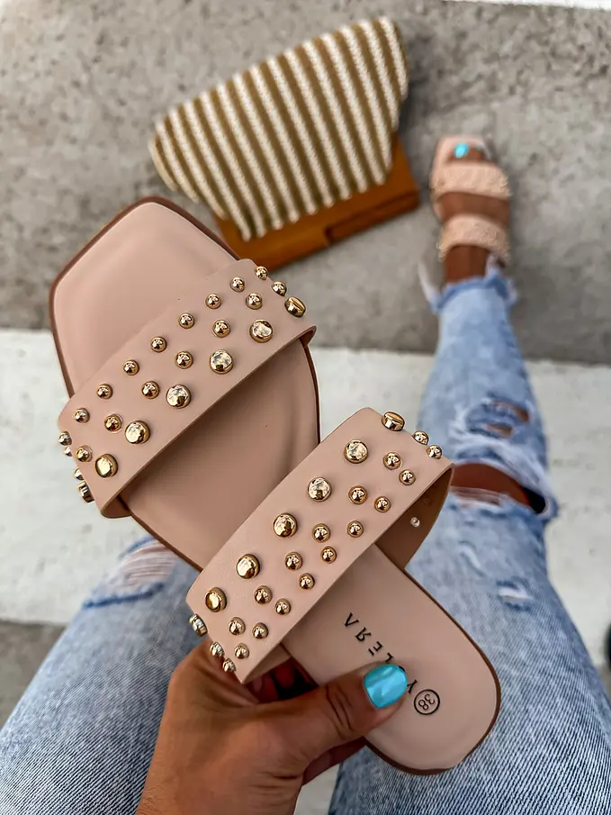 Šľapky zdobené zlatými nitmi ODETT-