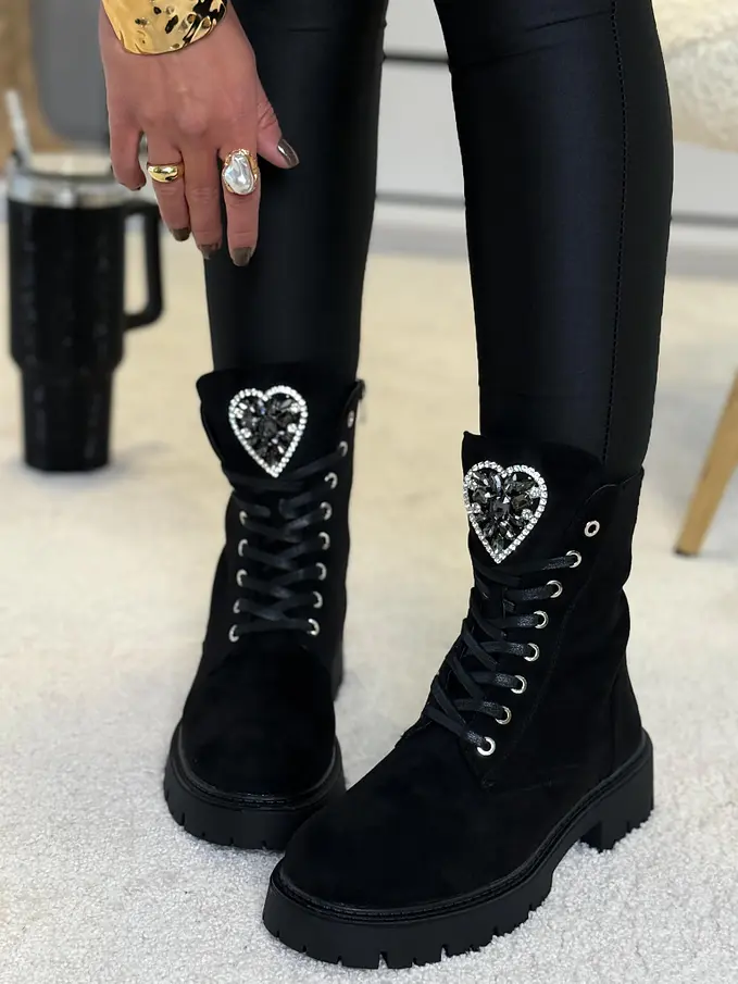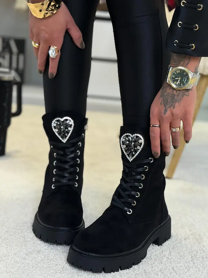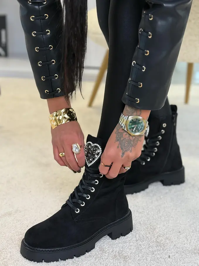 Šnúrovacie čižmy zdobené kamienkami MERANO+