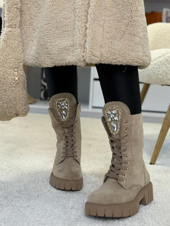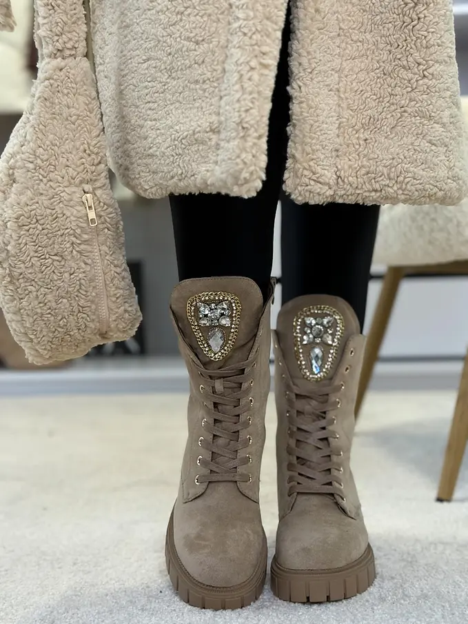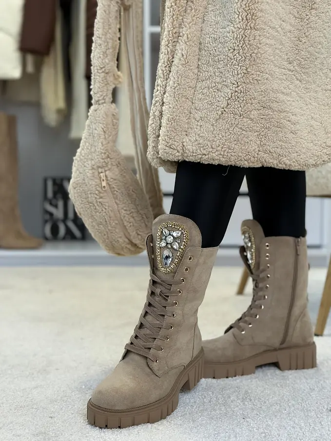 Šnúrovacie čižmy zdobené kamienkami MISENA