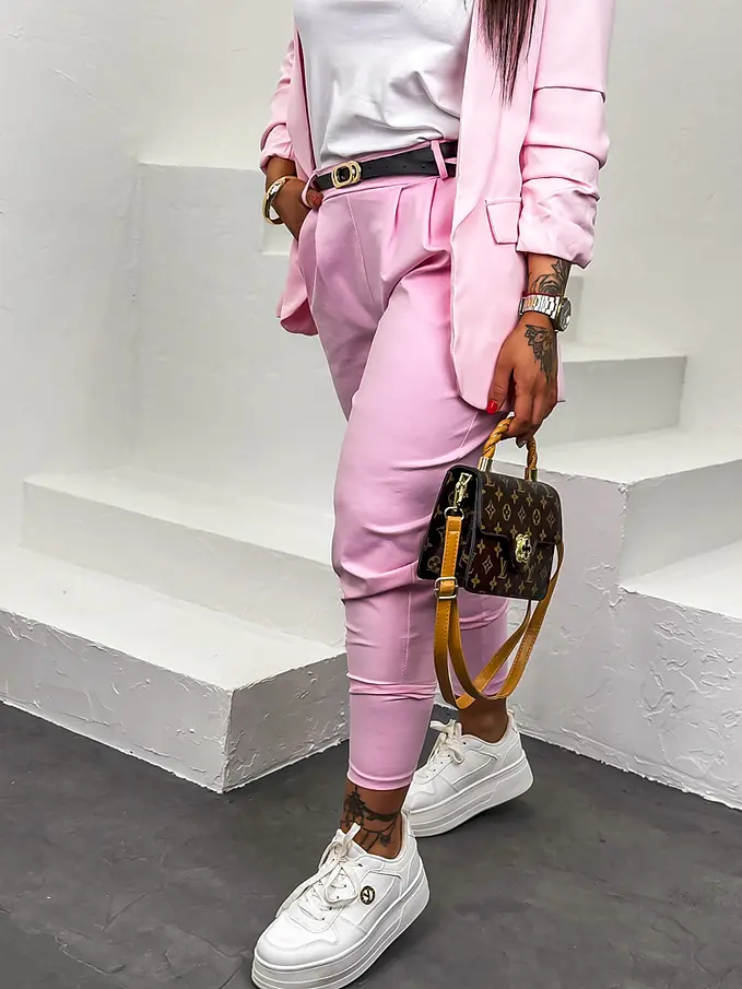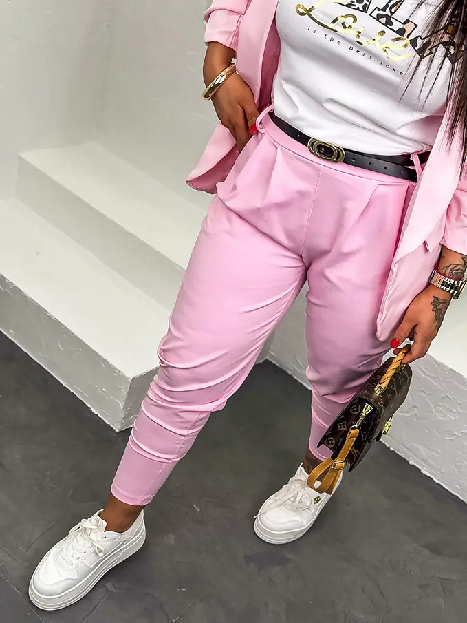 Športovo-elegantné nohavice s gumeným pásom a opaskom ROZI