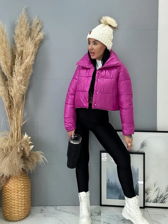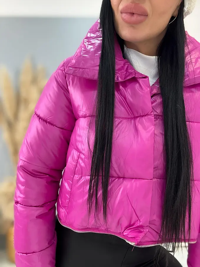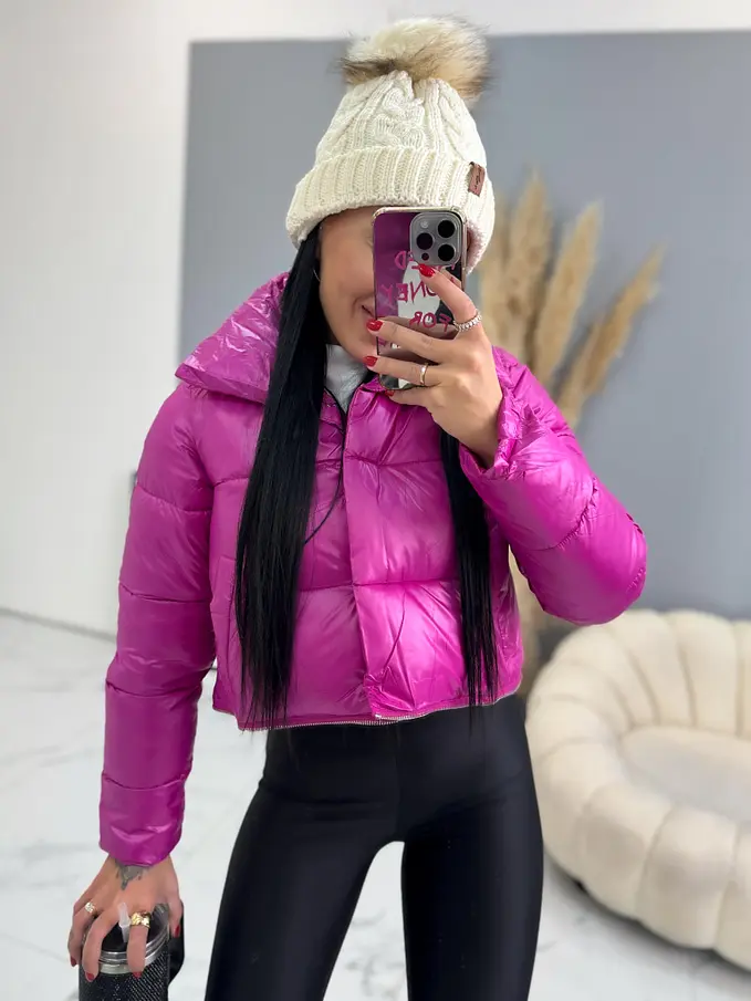 Skvelá prešívaná teplá bunda s reguláciou dĺžku. S bočnými vreckami. Zips v striebornej farbe.