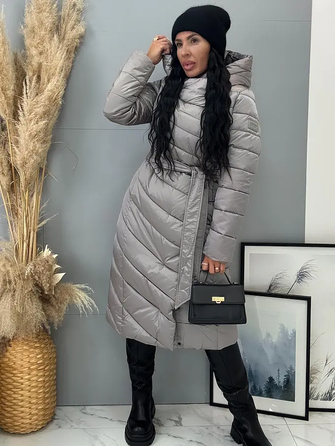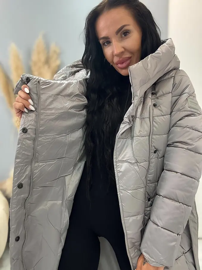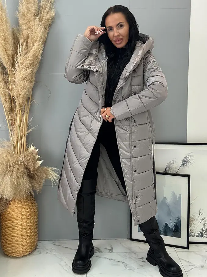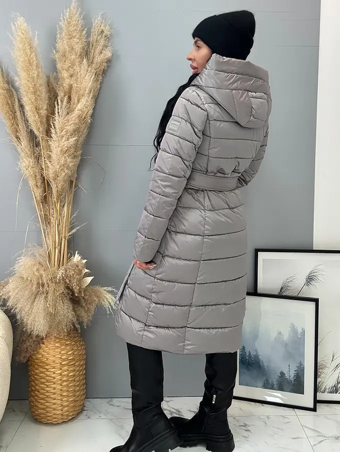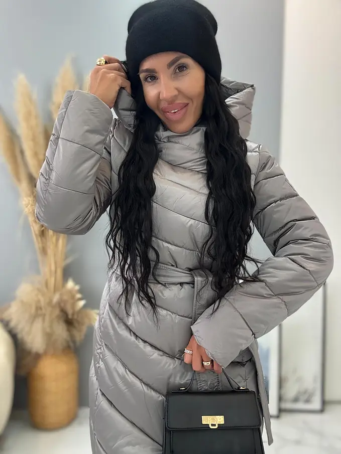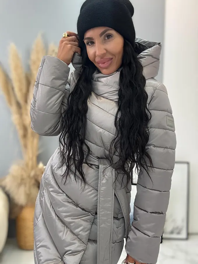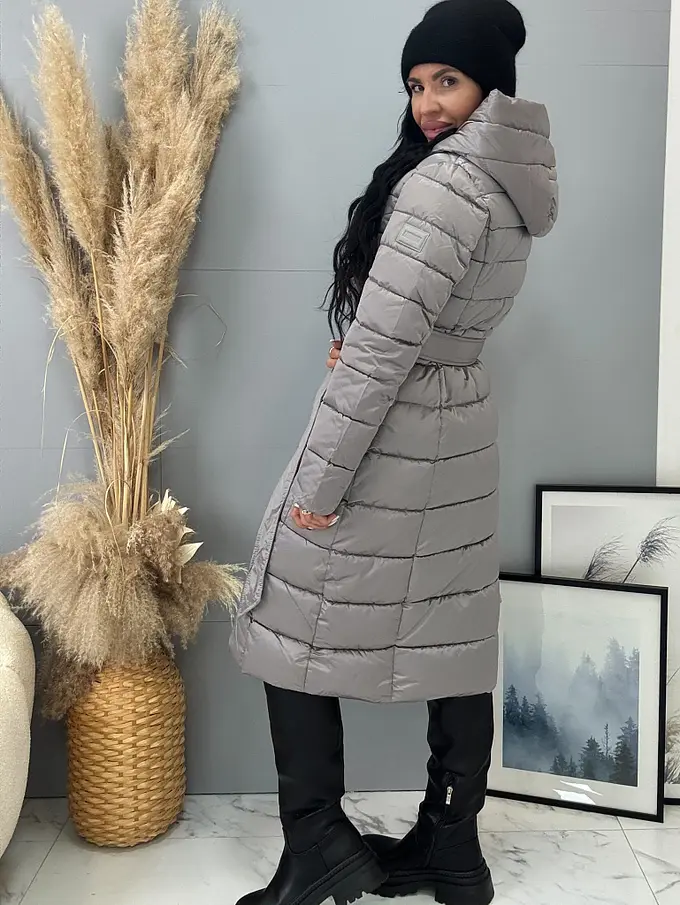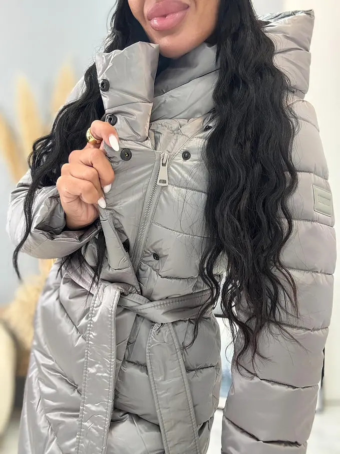 Štepovaná bunda s kapucňou a opaskom ARIAH