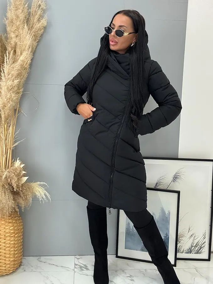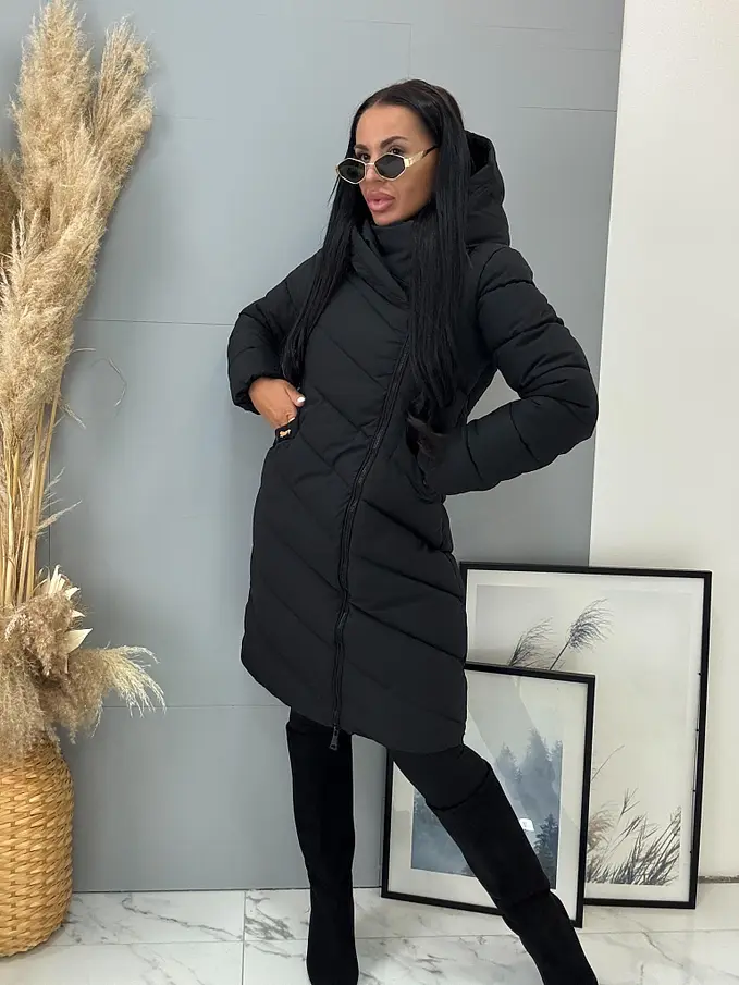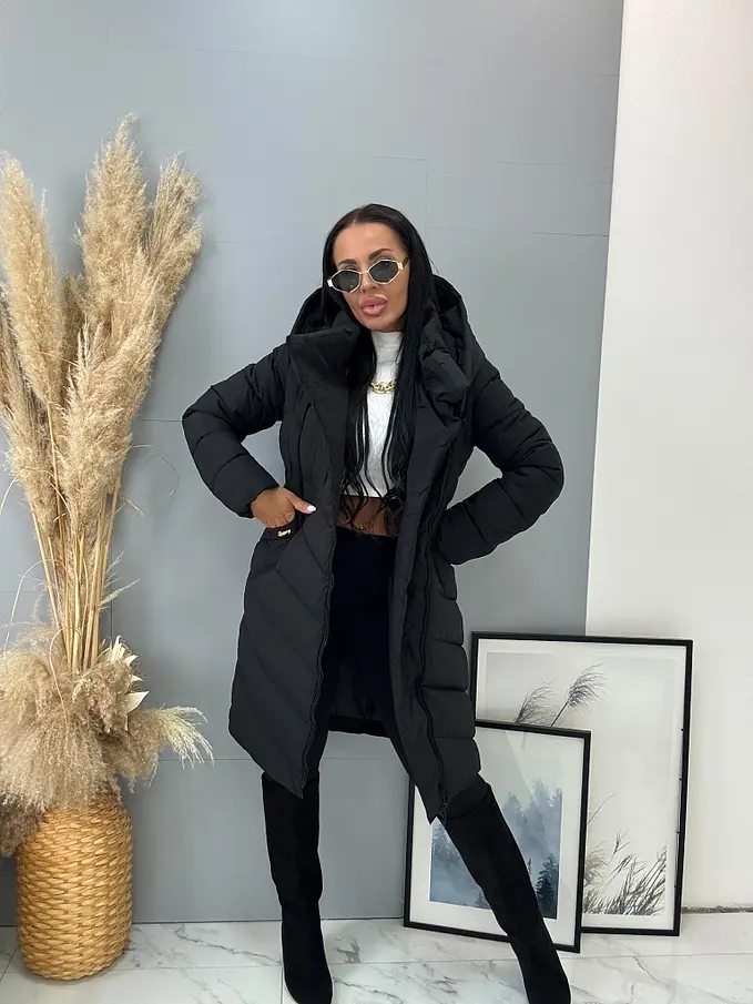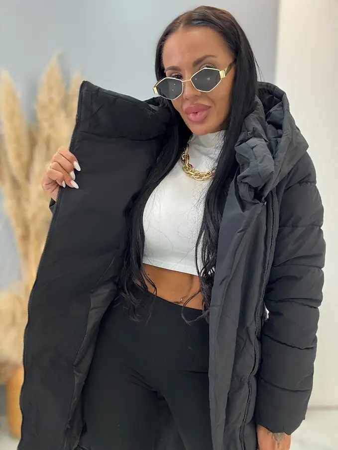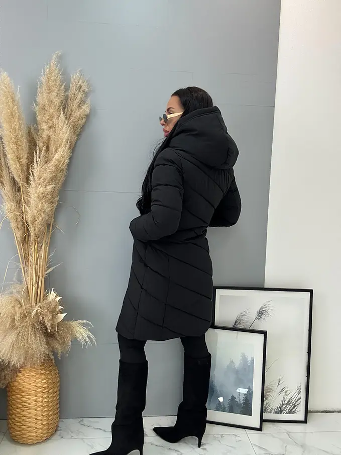 Štepovaná bunda s kapucňou a opaskom MARSELA