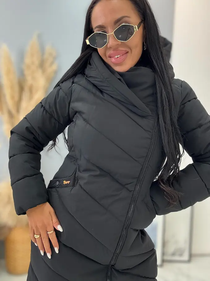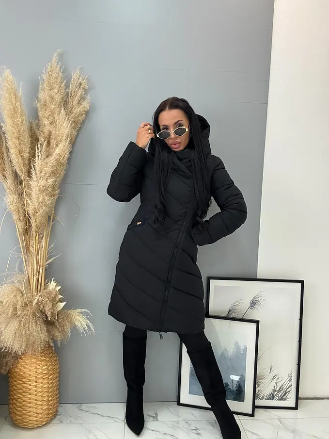 Bunda s odnimateľnou kapucňou. S bočnými vreckami. Ozdoba v zlatej farbe.
