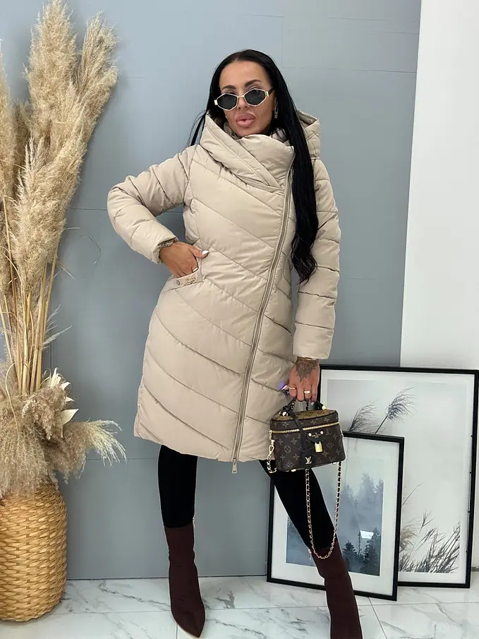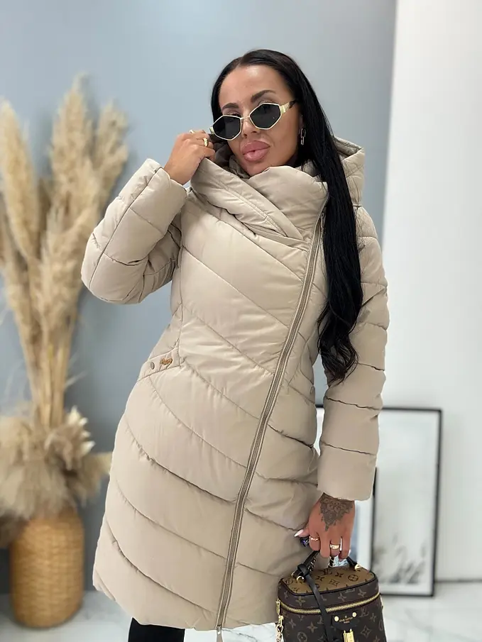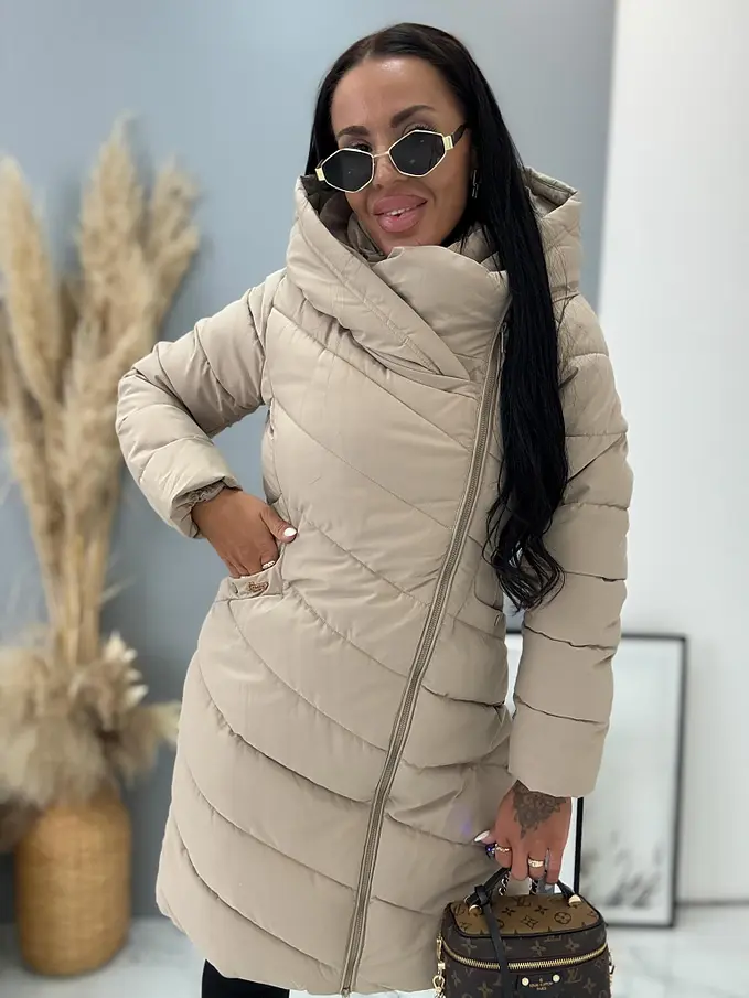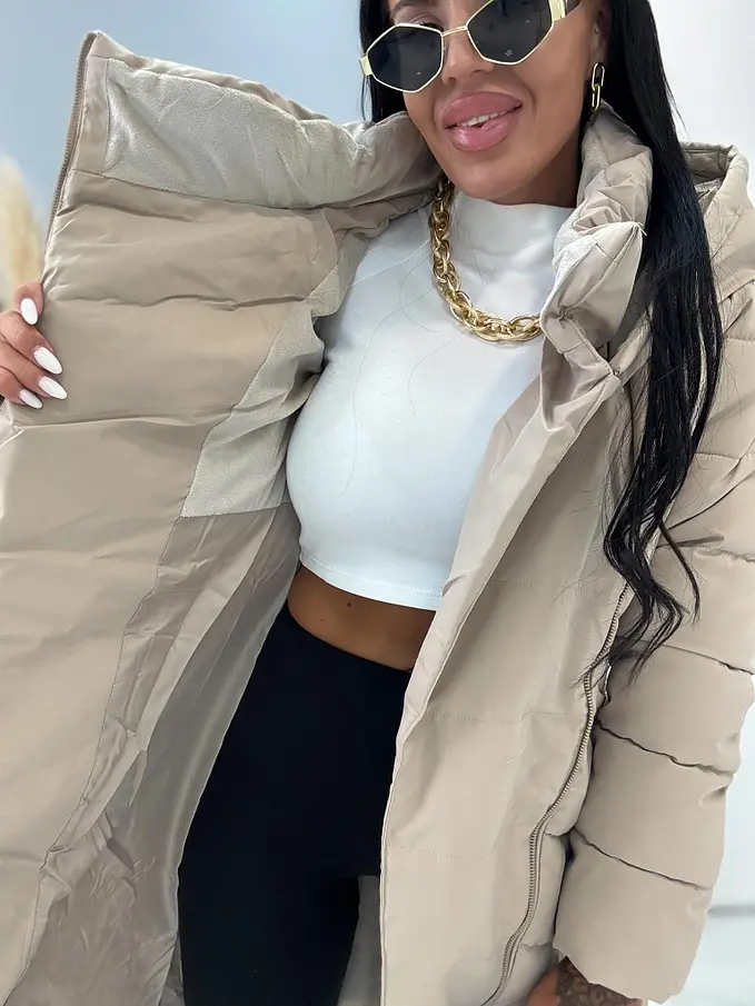 Štepovaná bunda s kapucňou a opaskom MARSELA