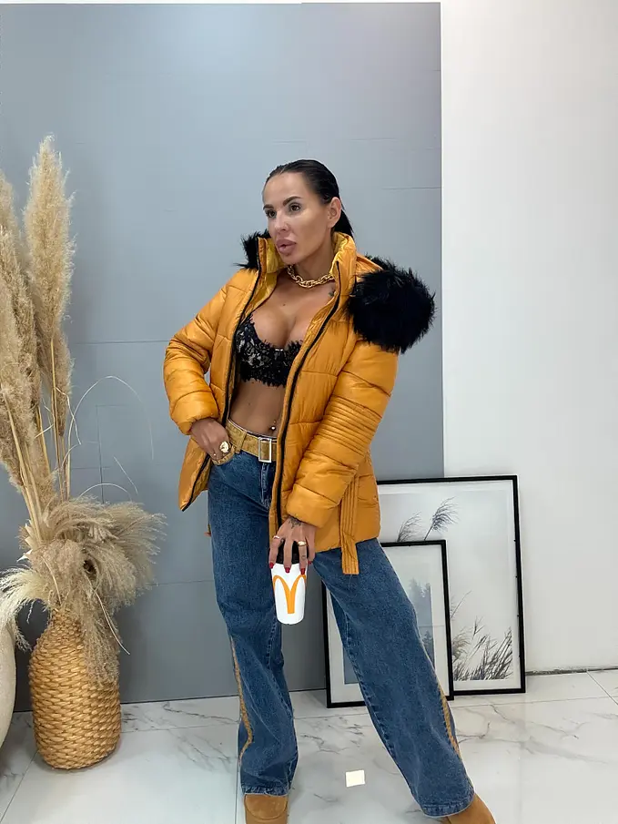 Dámsky kabát z novej kolekcie. Materiál nie je elasticky. Kapucňa nie je oddeliteľná.
