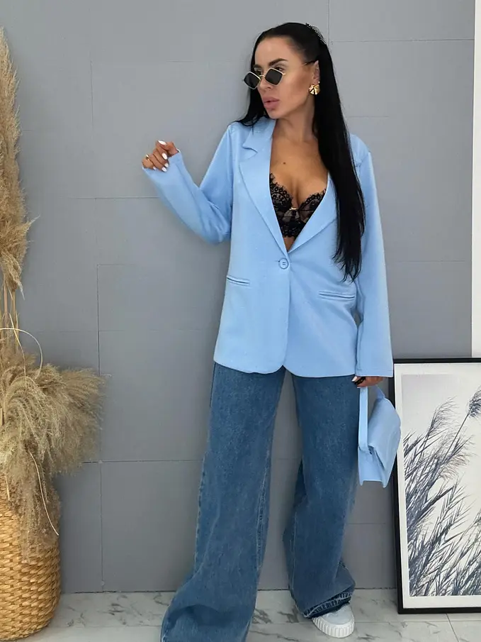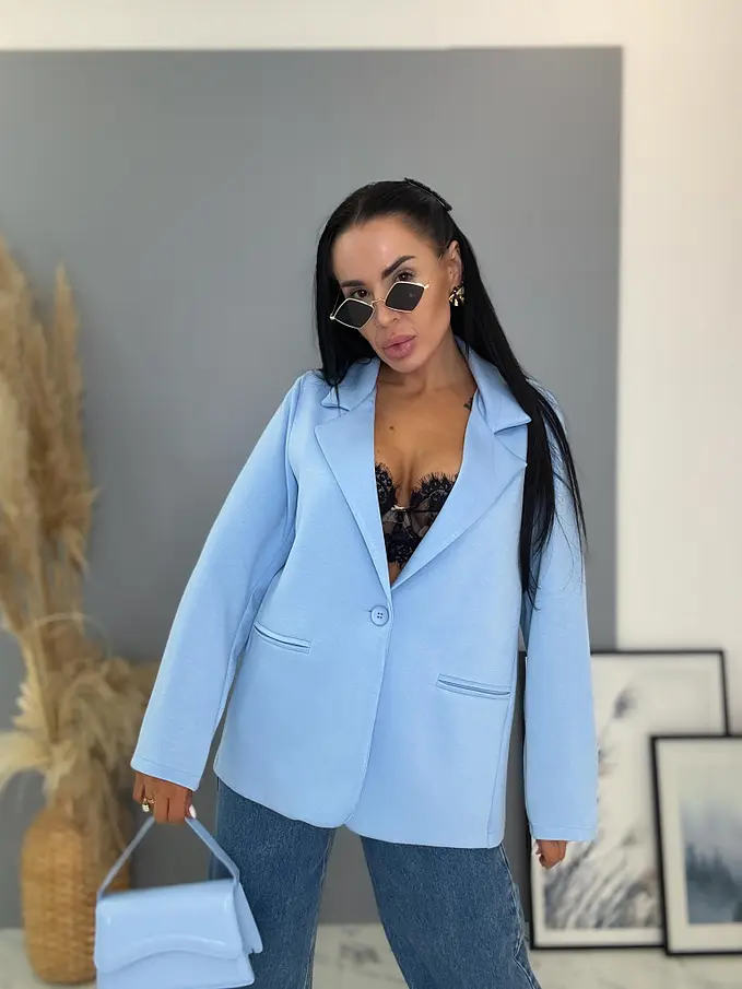 Dámske sako z príjemného materiálu. Materiál je elastický. Sako sa zapína na jeden gombík.