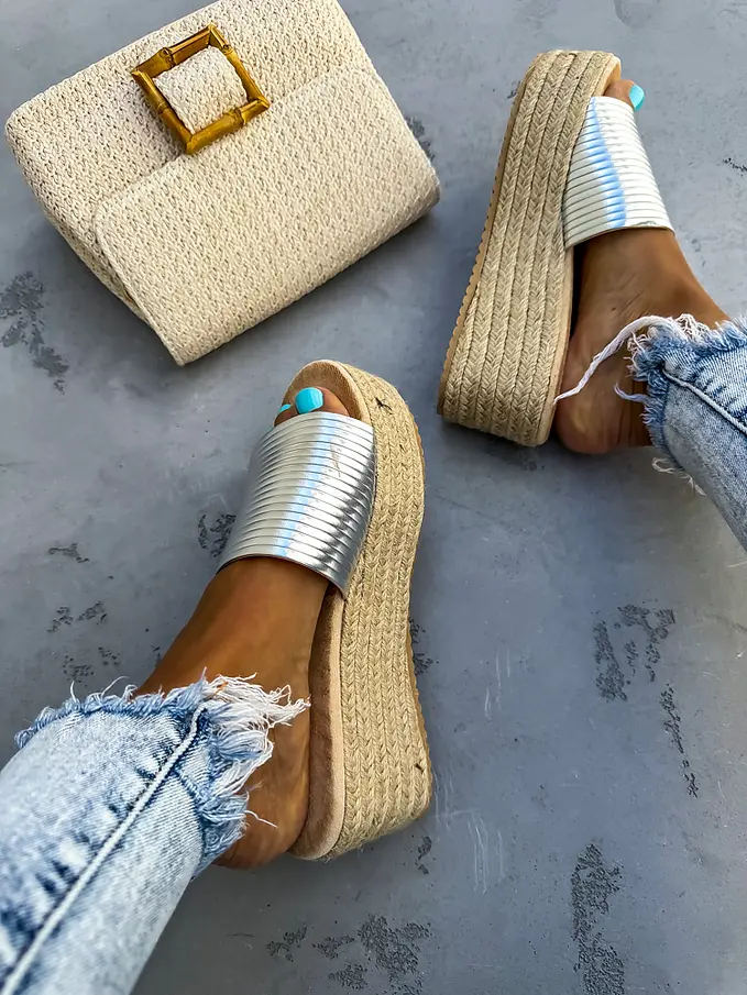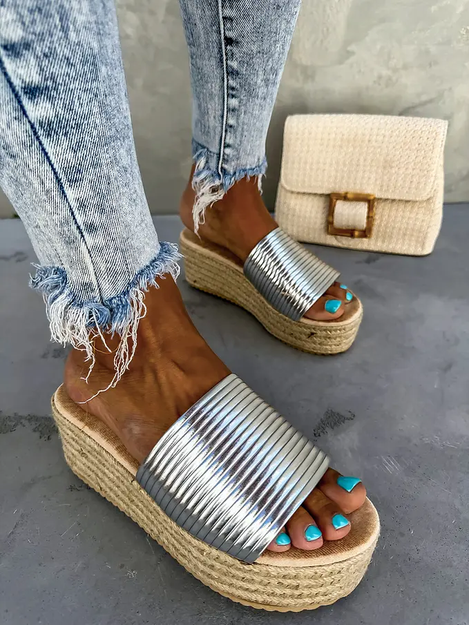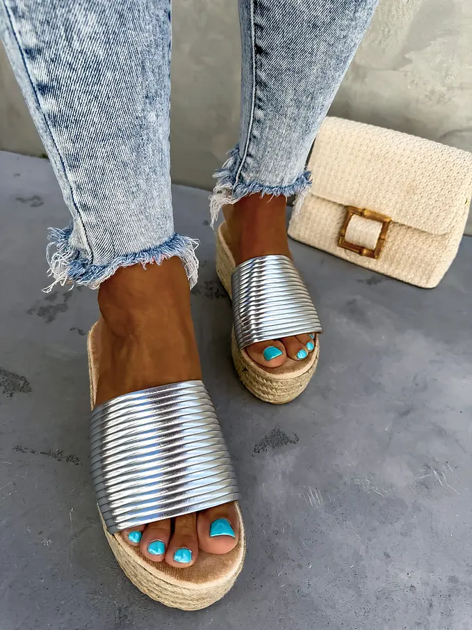 Strieborné platformové šľapky ATHENA-