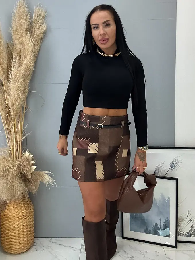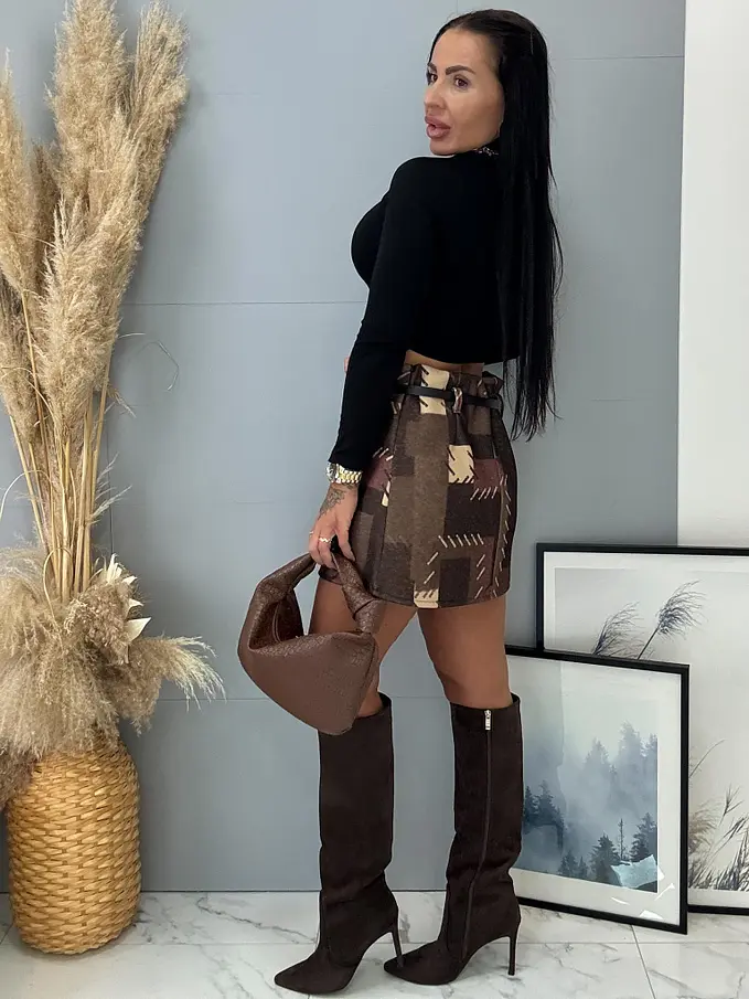 Sukňa z novej kolekcie. Vyrobená z minimálne elastického materiálu. S gumeným pásom. Ozdoba je zlatá.