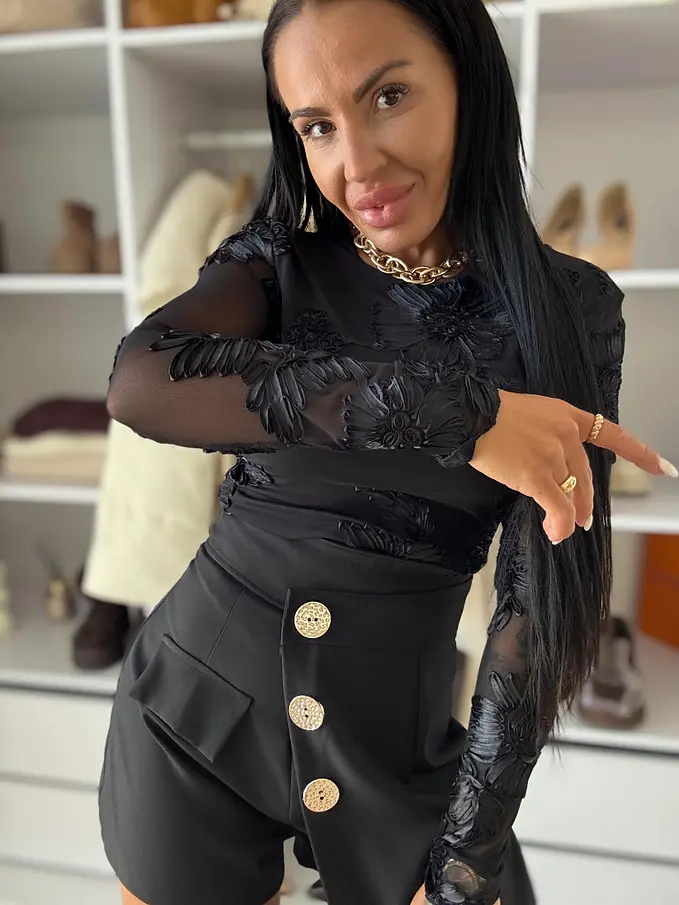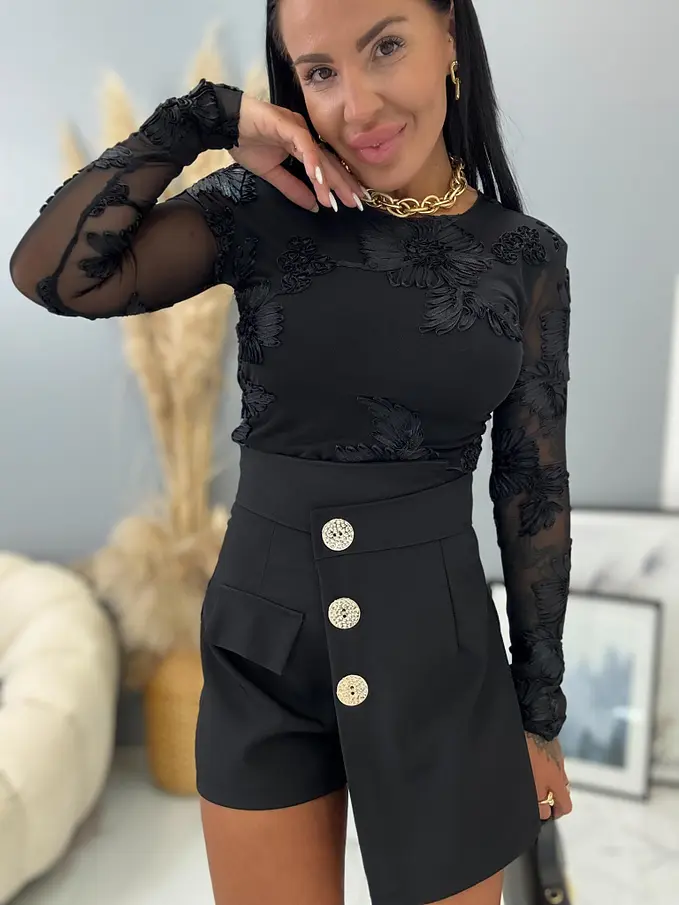 Sukňové nohavice z novej kolekcie. Materiál nie je elastický. So zipsom na zadnej strane. Ozdoba je zlatá.