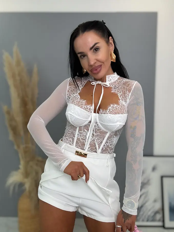 Modelka meria 164 cm a váži 57 kg. Nosí veľkosť S