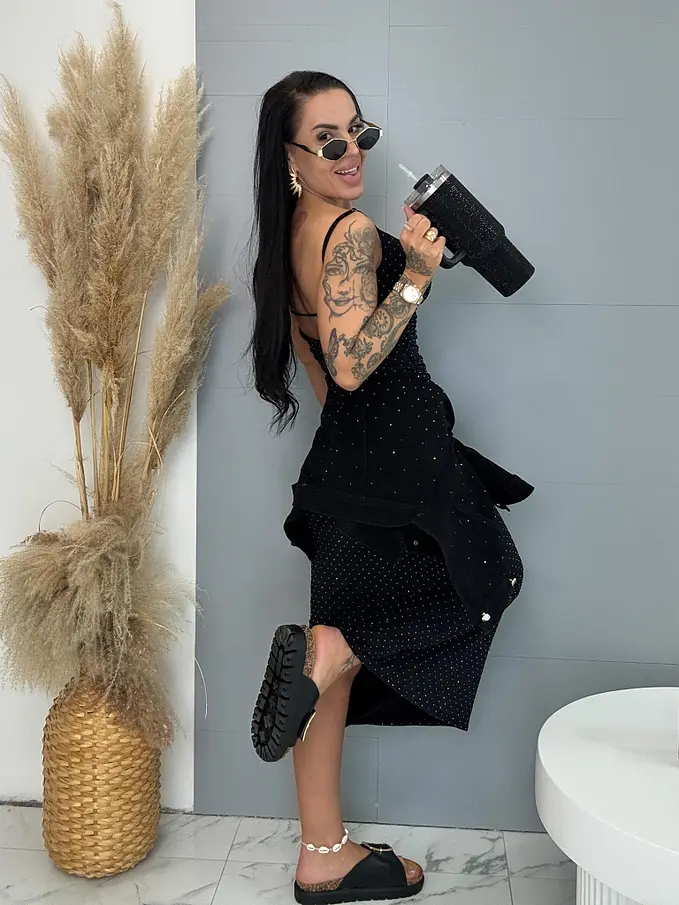 Trblietavé šaty zdobené kamienkami STERRY