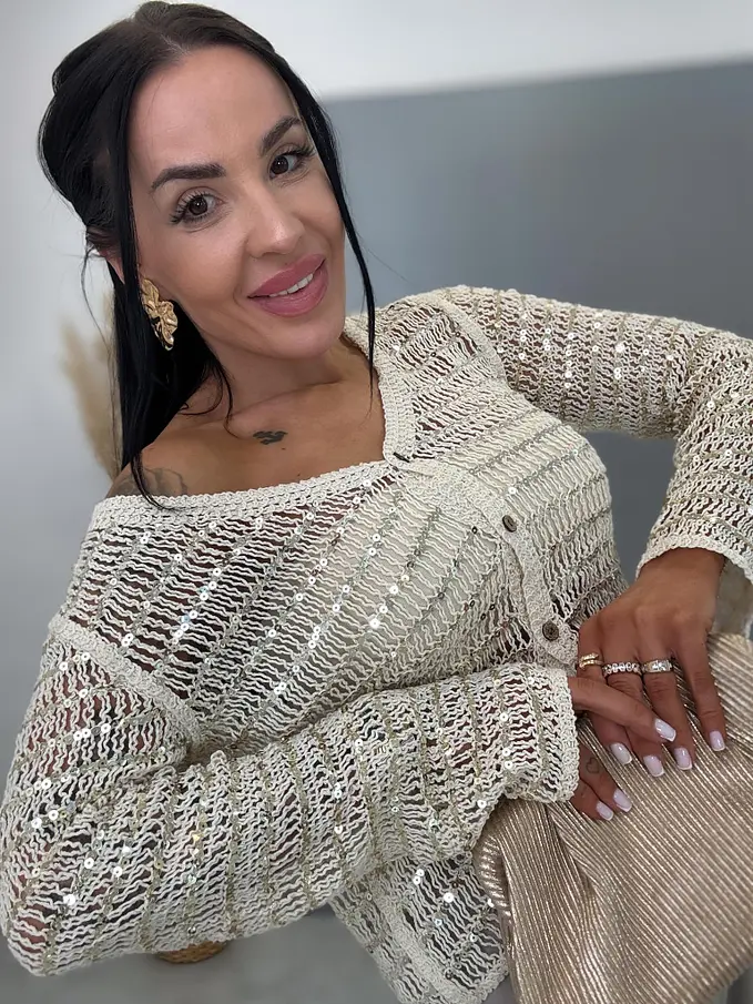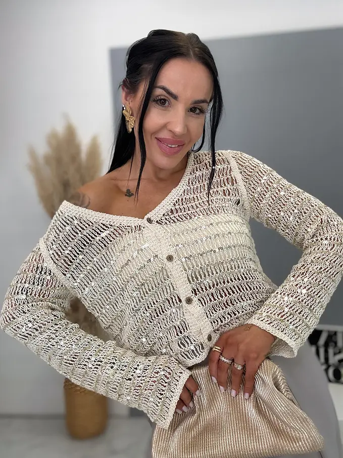 Trblietavý kardigan s dlhým rukávom ROMA