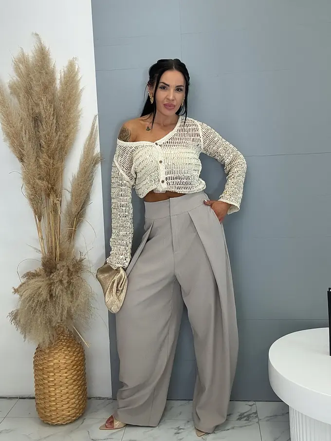 Kardigar je vyrobený z príjemného materiálu, háčkovaný s flitrami, elastický materiál