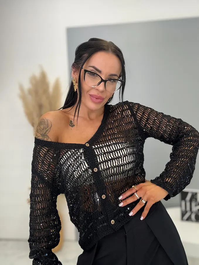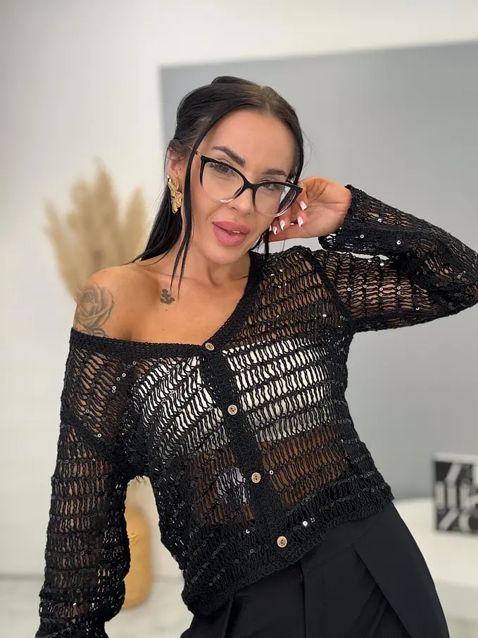 Trblietavý kardigan s dlhým rukávom ROMA