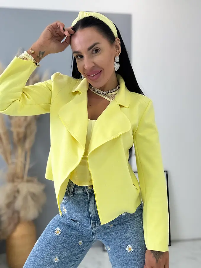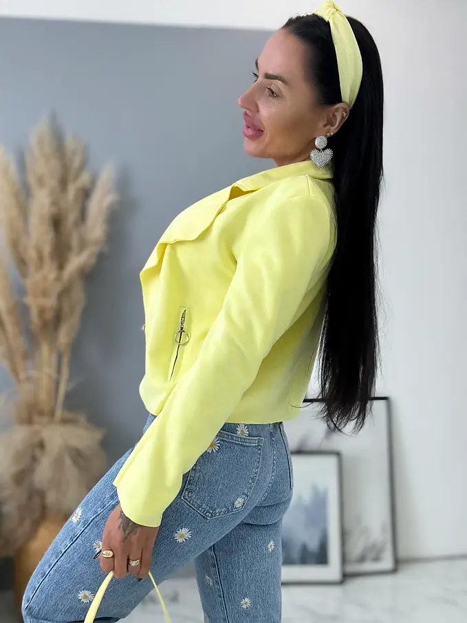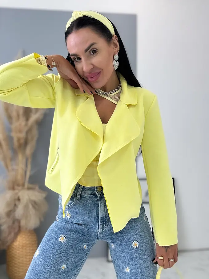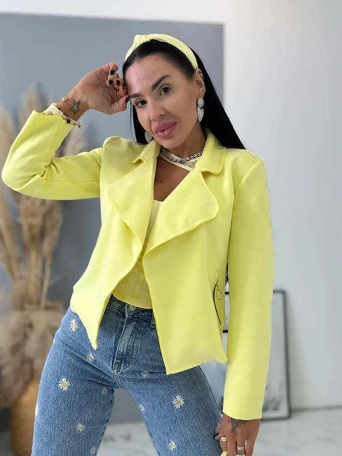 Dámsky blejzer z velúrového materiálu. Materiál je jemne elastický. Bez zapínania, bez podšívky. Má nefunkčné vrecká, zips v striebornej farbe.