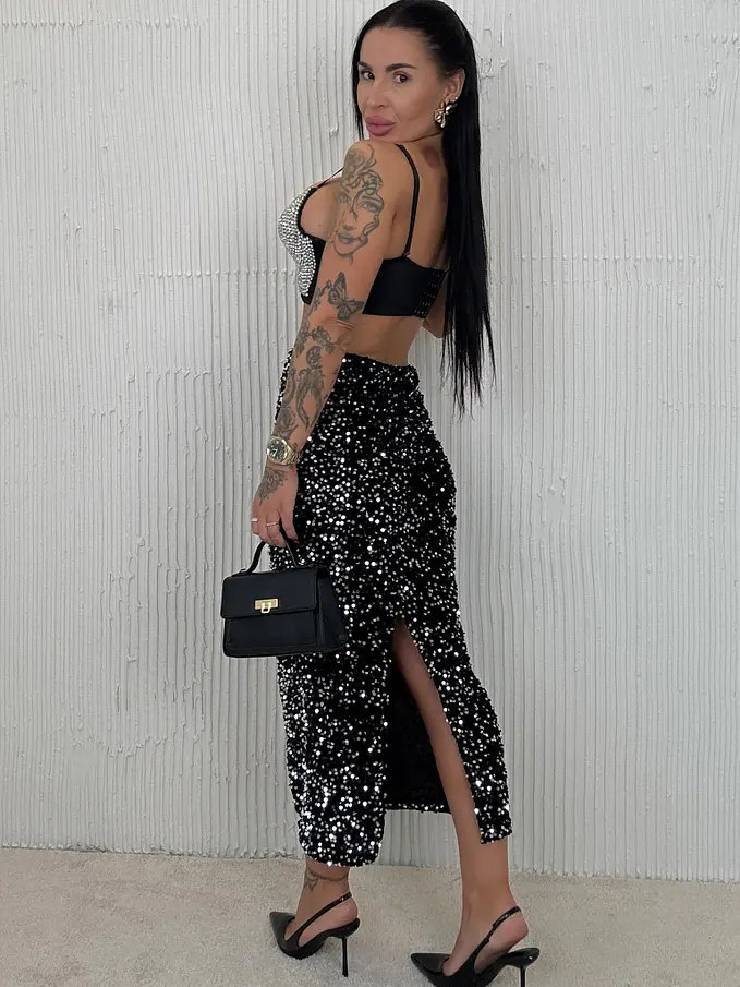 Velvet sukňa zdobená flitrami GABBY+