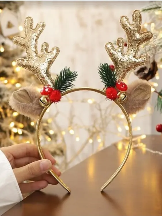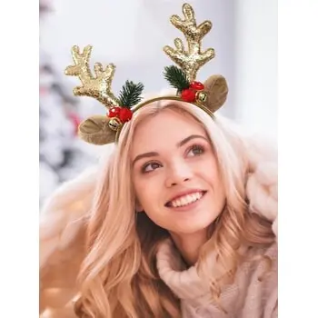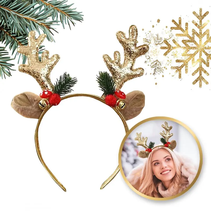 Vianočná čelenka do vlasov so sobími ušami a rohmi. Perfektný doplnok na špeciálnu príležitosť.