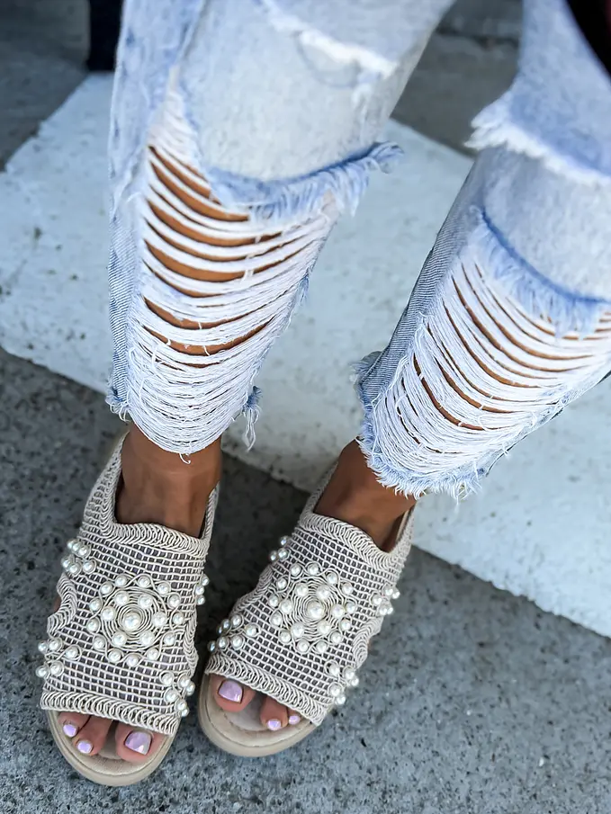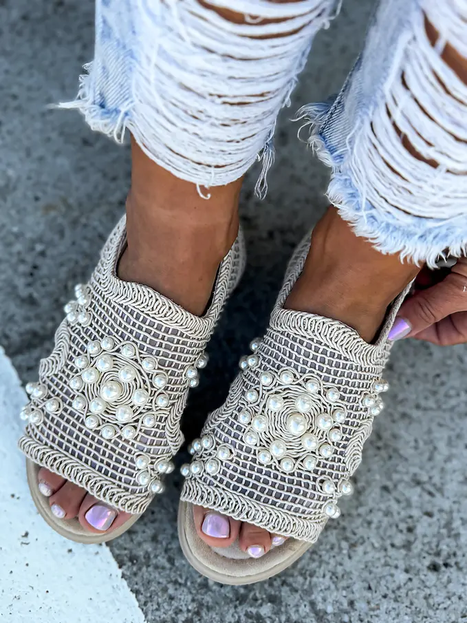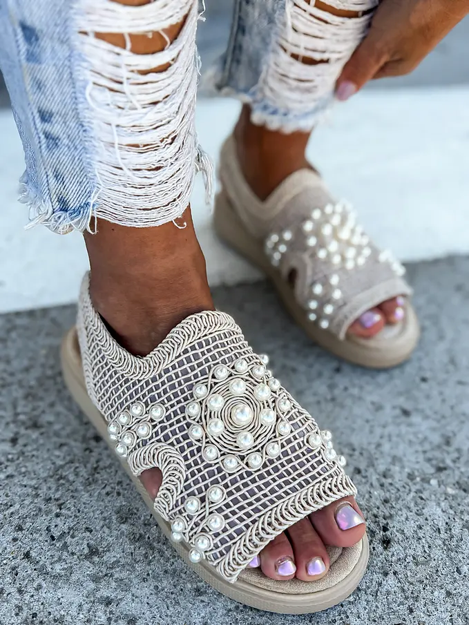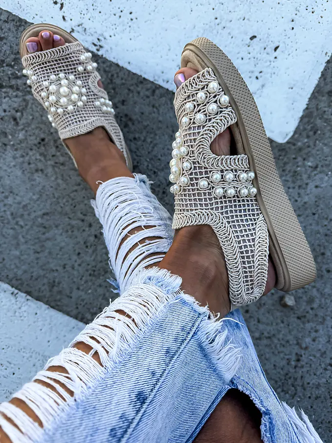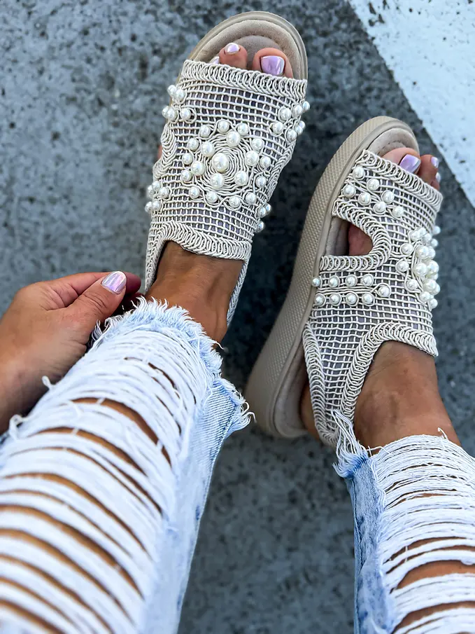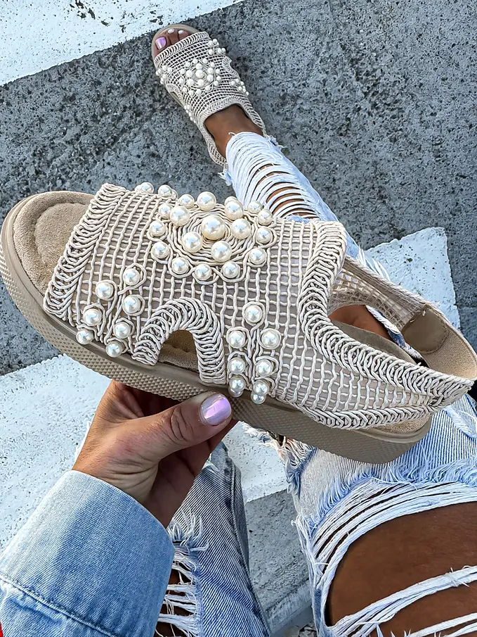 Vyšívané sieťované sandále zdobené korálikmi PALOMA-