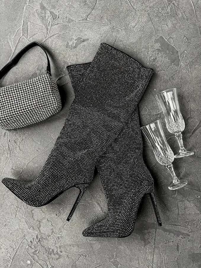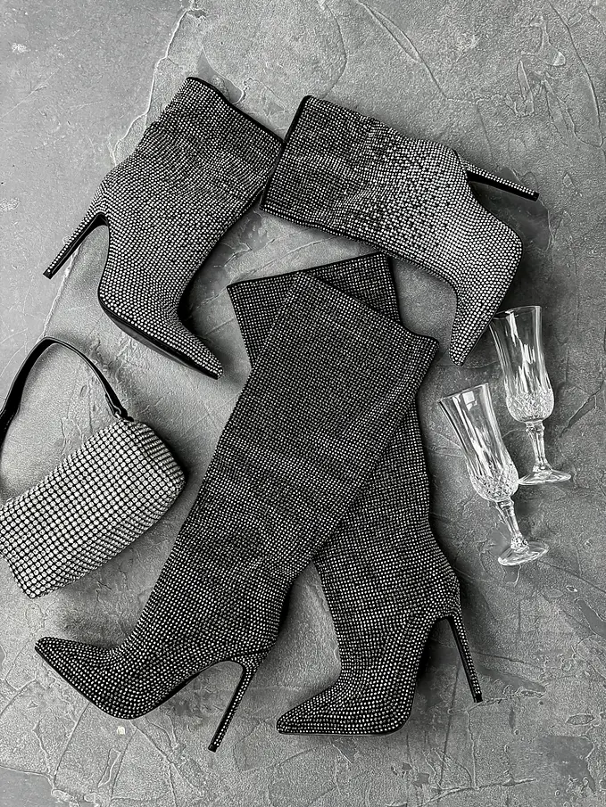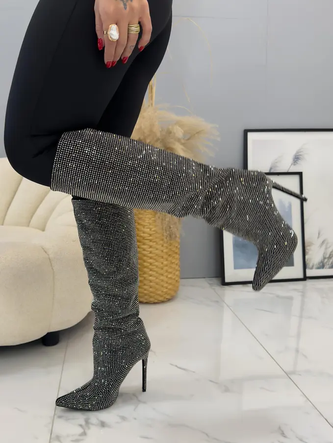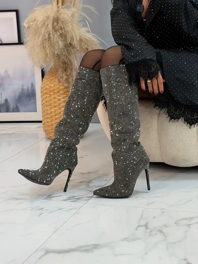 Vysoké čižmy zdobené kamienkami CAYSHA-