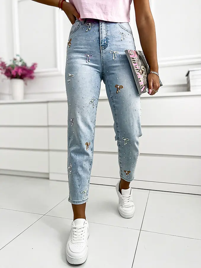 Premium kvalita. Pohodlné rifle z minimálne elastického materiálu. Rifle sú zdobené vyšívanými mašľami.